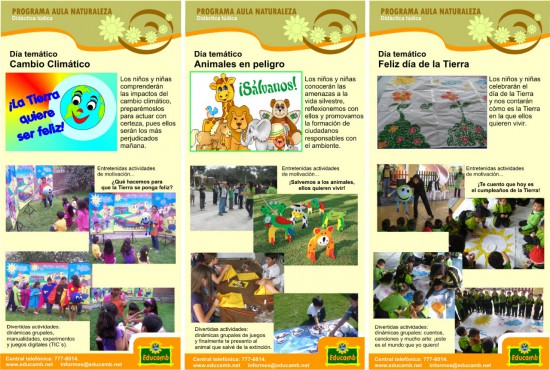 Educamb realiza talleres educativos especialmente diseñados para colegios de modo que mediante actividades lúdicas, se complemente el trabajo correspondiente a la programación curricular de los diferentes grados de estudio.